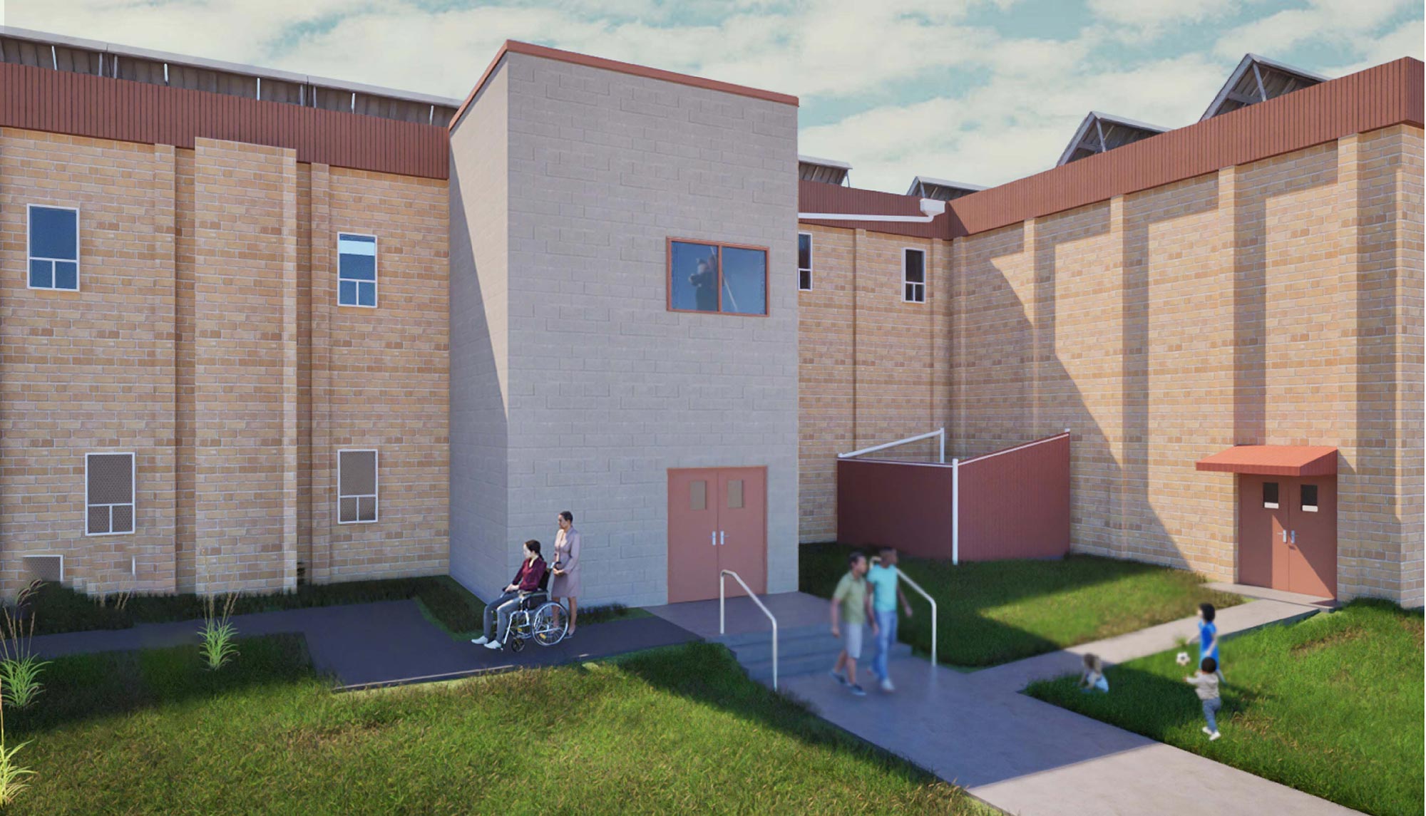 Akana provided architectural and engineering services, including mechanical systems and structural design, as well as concept design, construction documents, bidding support, and construction administration. The completed addition delivers new accessible vertical connections—elevator, stairway, and ramping—ensuring inclusive movement throughout the campus. These upgrades offer elders and individuals with limited mobility improved access between building levels and outdoor amenities, addressing a long-standing need for accessibility.